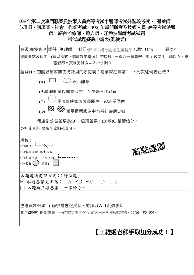 105年第二次專技高考護理師爭議題加分如下!