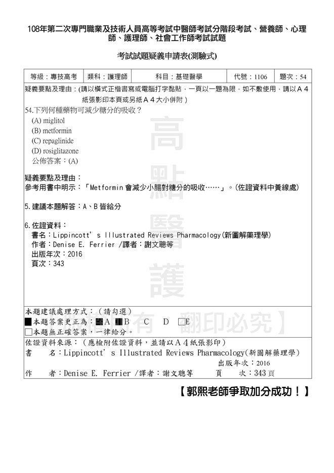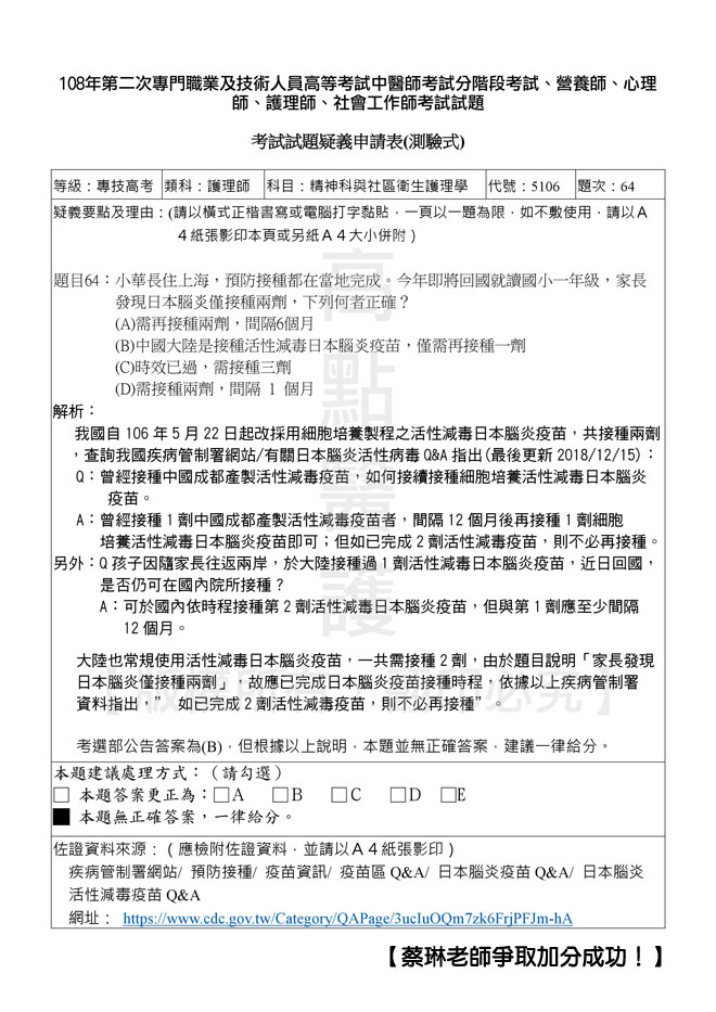 108年第二次專技高考護理師爭議題加分如下!