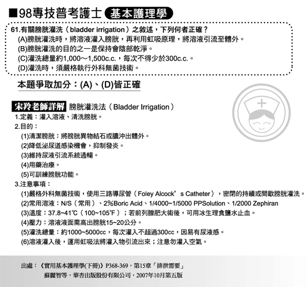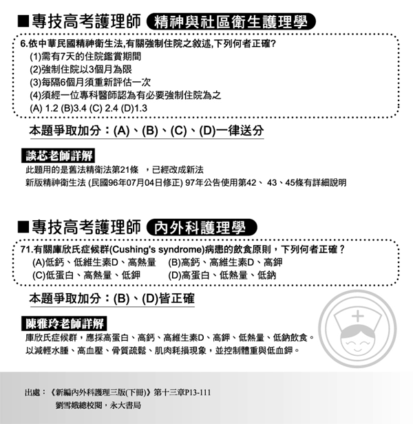 98年第一次專技普考護士爭議題加分如下!